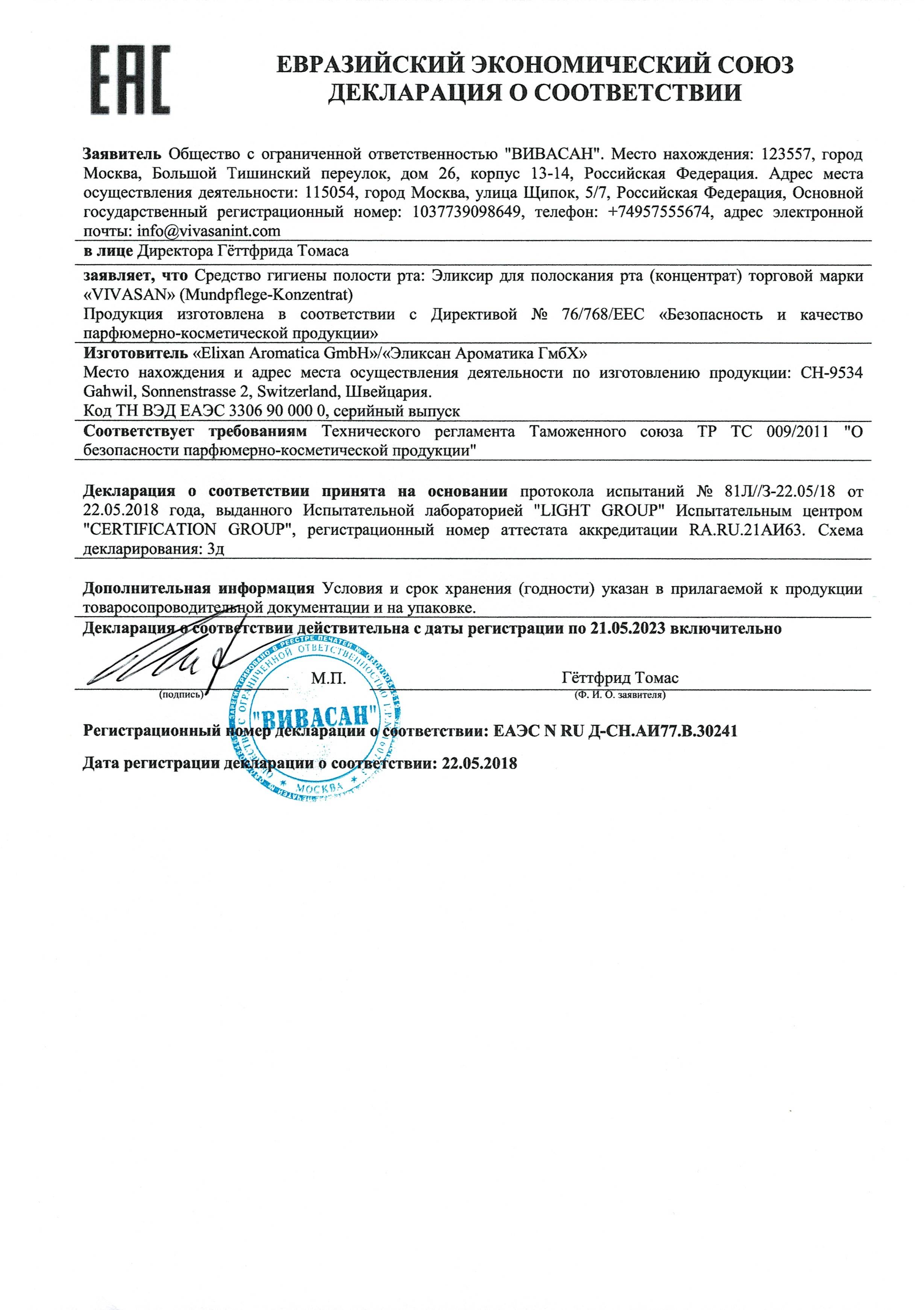 Производитель: Elixan Aromatica (Vivasan) Швейцария